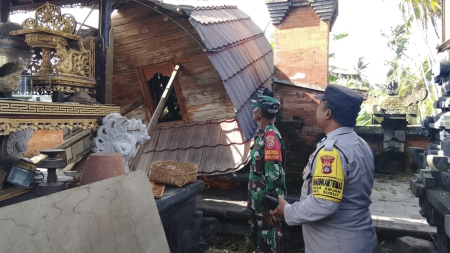 BANGLI, INFODEWATA.COM – Cuaca ekstrem berupa hujan lebat disertai angin kencang yang melanda wilayah Kabupaten Bangli pada Kamis (5/3) menyebabkan kerusakan di sejumlah lokasi, termasuk bangunan suci di pura serta fasilitas milik warga.