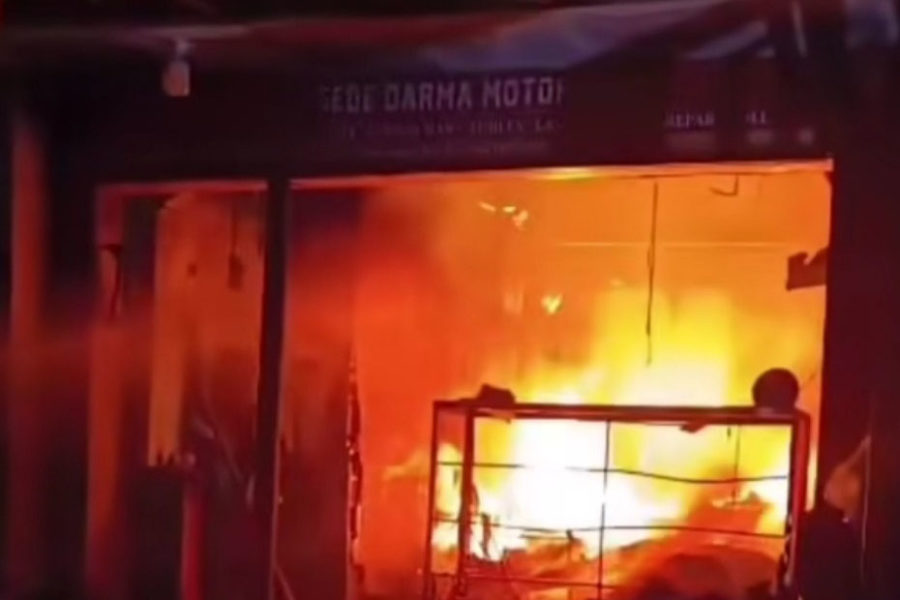 Api membakar hebat bengkel sepeda motor di Jalan Tukad Melangit, Panjer, Denpasar Selatan, Rabu (7/1/2026) dini hari. (Foto: Istimewa)