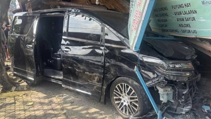 Di sisi lain, Toyota Vellfire yang juga kehilangan kendali menabrak Honda Vario DK 4669 FAF yang terparkir, sebelum akhirnya berhenti setelah menabrak sebuah warung.