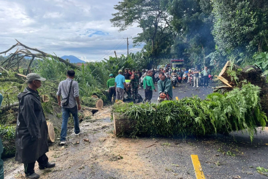 Aiptu Inastuti mengimbau masyarakat serta perangkat desa agar meningkatkan kewaspadaan terhadap pohon-pohon besar yang berada dekat badan jalan, terutama jenis pohon yang mudah patah saat cuaca ekstrem.