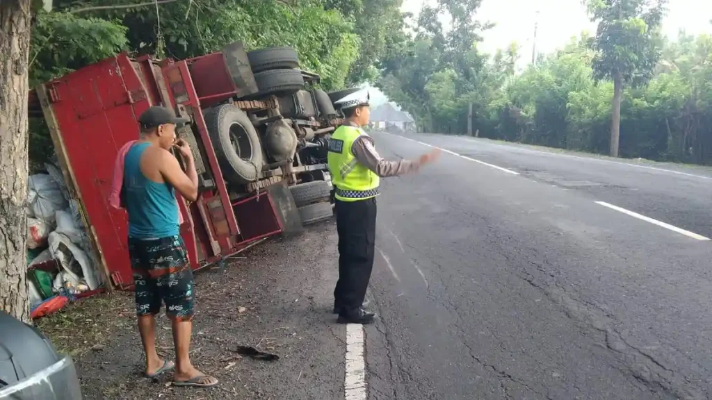 Kapolsek Melaya, Kompol I Ketut Sukadana, saat dikonfirmasi membenarkan kejadian tersebut. “Saat melewati jalan bergelombang, truk kemudian oleng dan terguling lalu jatuh di bahu jalan sebelah kiri di jalurnya dari arah timur,” ujarnya.