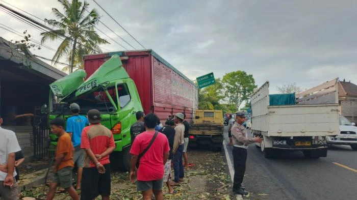 Kasat Lantas Polres Jembrana, Iptu Aldri Setiawan, membenarkan insiden tersebut. “Sebelum kejadian, kabin truk terlepas dan sopir melompat keluar. Sementara truk tetap melaju dan akhirnya menabrak toko bangunan di sisi kanan jalan,” jelasnya.