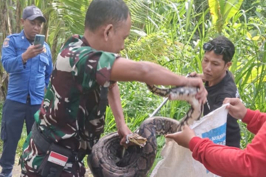 Ular sanca tersebut kemudian dimasukkan ke dalam karung untuk selanjutnya dipindahkan dan dilepasliarkan ke habitat yang jauh dari permukiman warga, guna mencegah terulangnya kejadian serupa serta menjaga keselamatan masyarakat. (*)