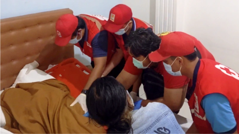 Petugas PMI Kota Denpasar mengevakuasi jenazah WNA asal Kanada yang ditemukan meninggal dunia di kamar penginapan wilayah Denpasar Barat. (Foto: Istimewa)